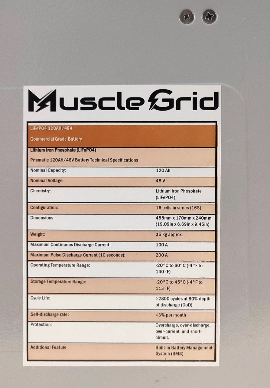 To recap, these are facts about the MuscleGrid 48V 120Ah LiFePO4 Server Rack Battery: