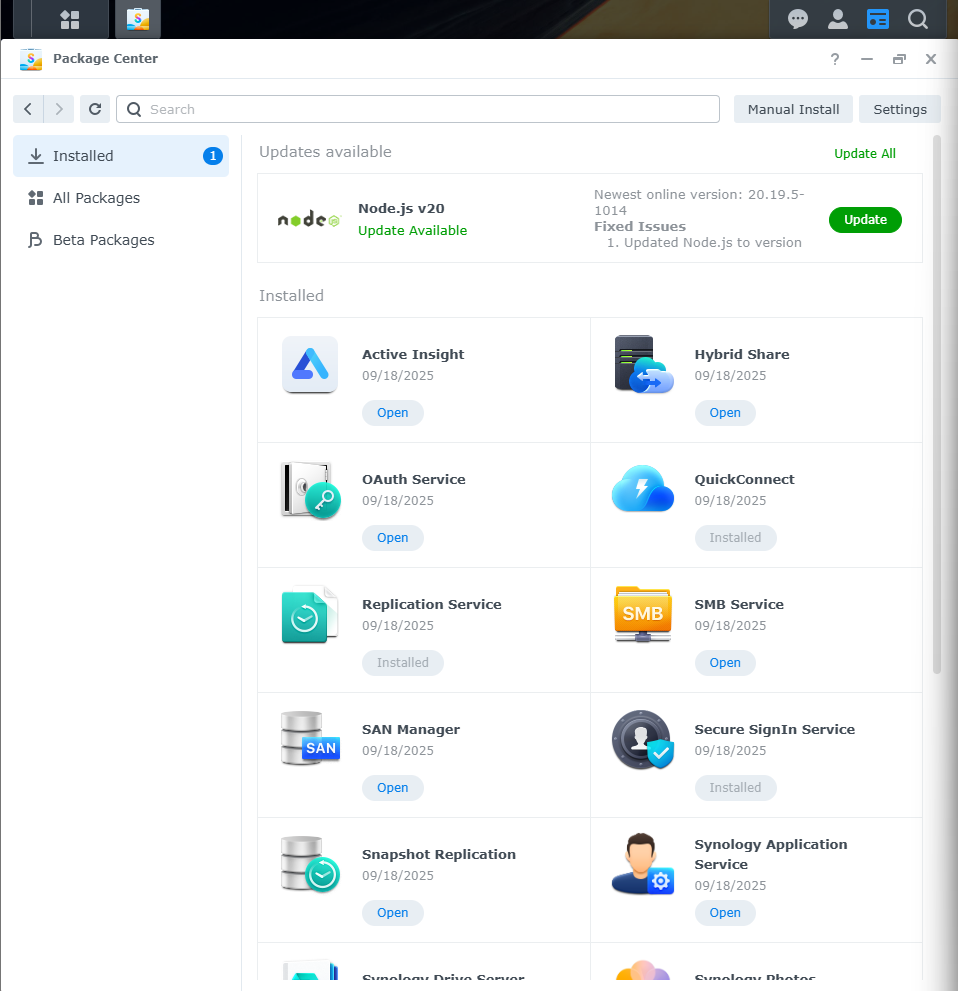 And managing the packages and the DSM is very easy. You will be notified when there is an update, and you simply have to update with a click. Seamless and fast.