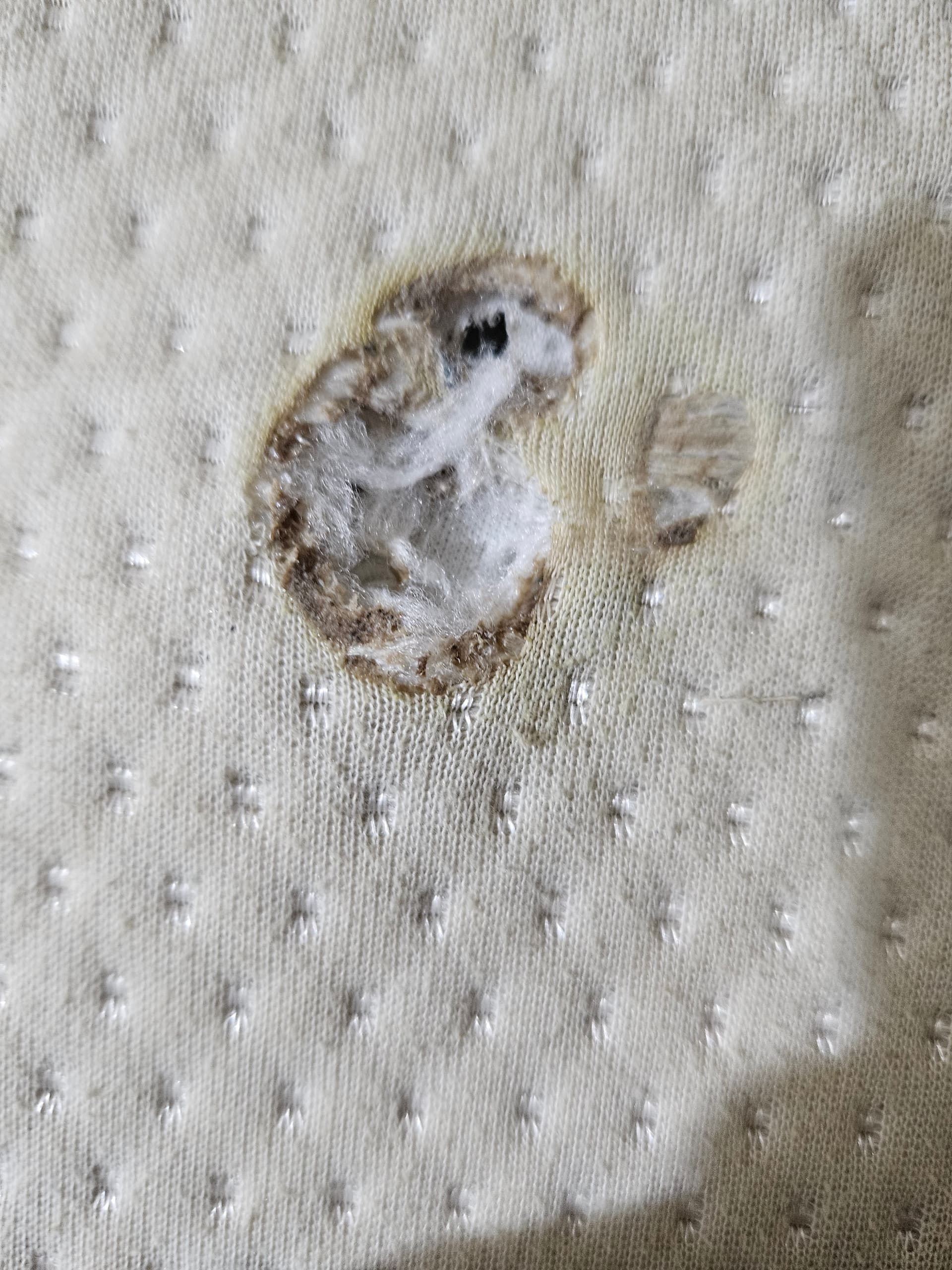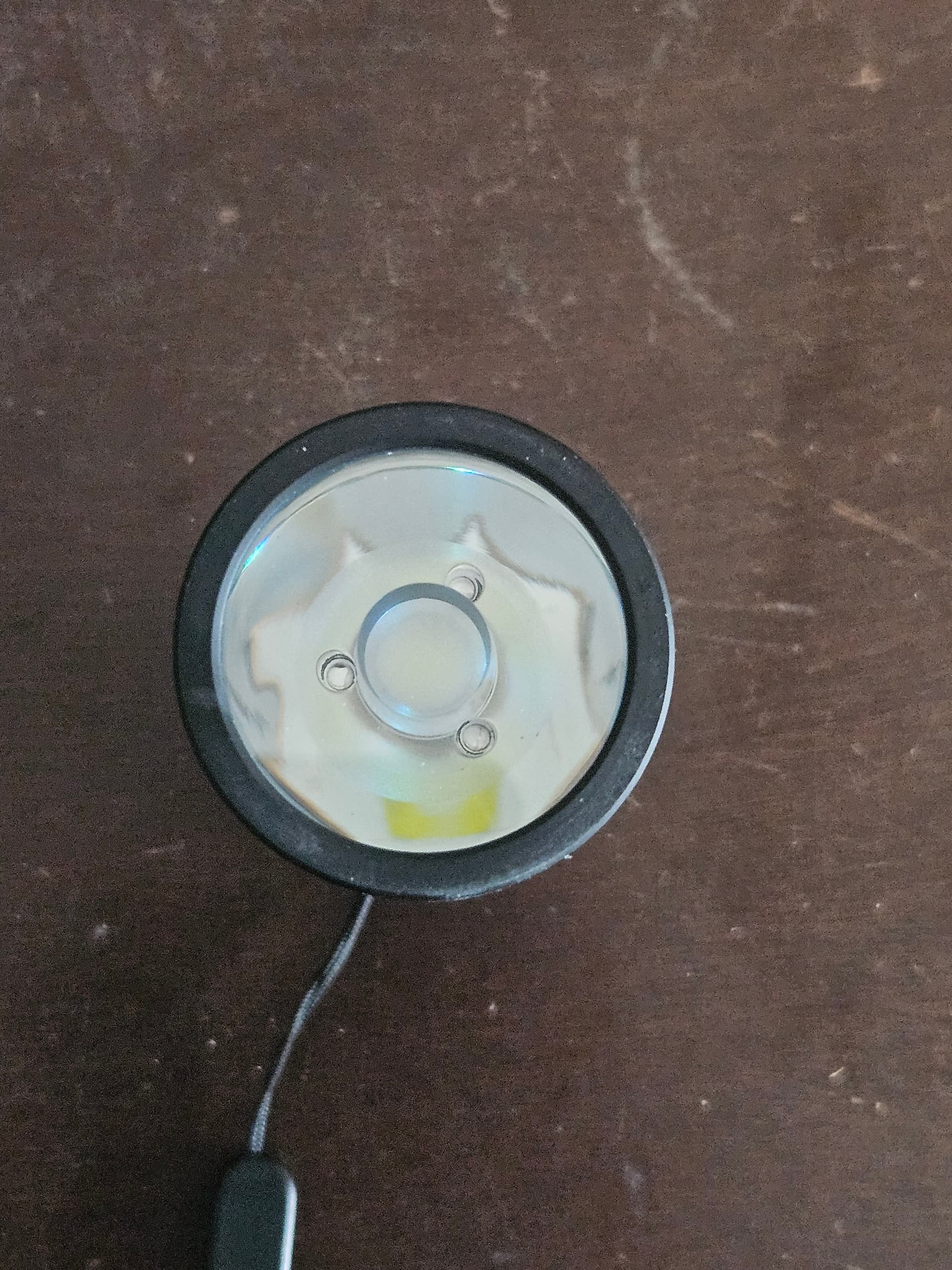 Astrolux FT02s, 4x CREE XHP50.2 LEDs, insane light output, can light paper on fire. Supports 18650, 21700 and 26650 cells, I’m using a high discharge 21700 with it. My first high power flashlight, and the most powerful one I own. Hard to explain how powerful over a forum post, but it burnt a hole through my bed-sheet and Wakefit mattress, when a friend didn’t quite believe the claims and held it down on the bed for 20s or so (by the time I noticed damage was already done, the bed-sheet had simply vaporized, mattress had a hole with charred edges), picture below.