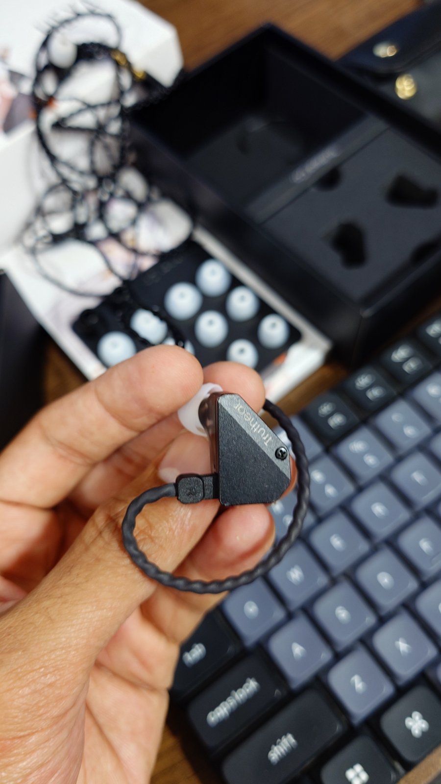 Probably one of the best sounding IEM’s I’ve used. Dual drivers produce an excellent soundstage. It looks very classy, especially with the all black cable, almost looks like a black chain.