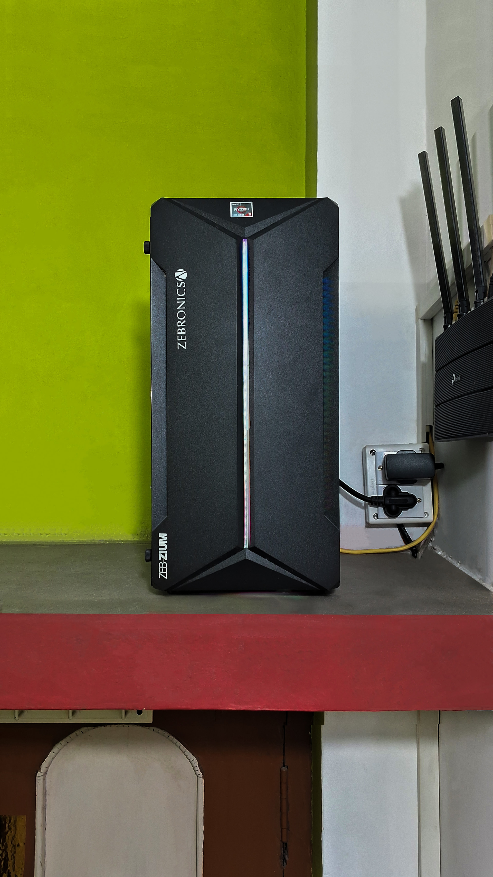 Also swapped all parts from the table, into a Zebronics cabinet, where the front led is what brought me to choose it as the case (else the plan was to build a wall mounted shelf for this thing)