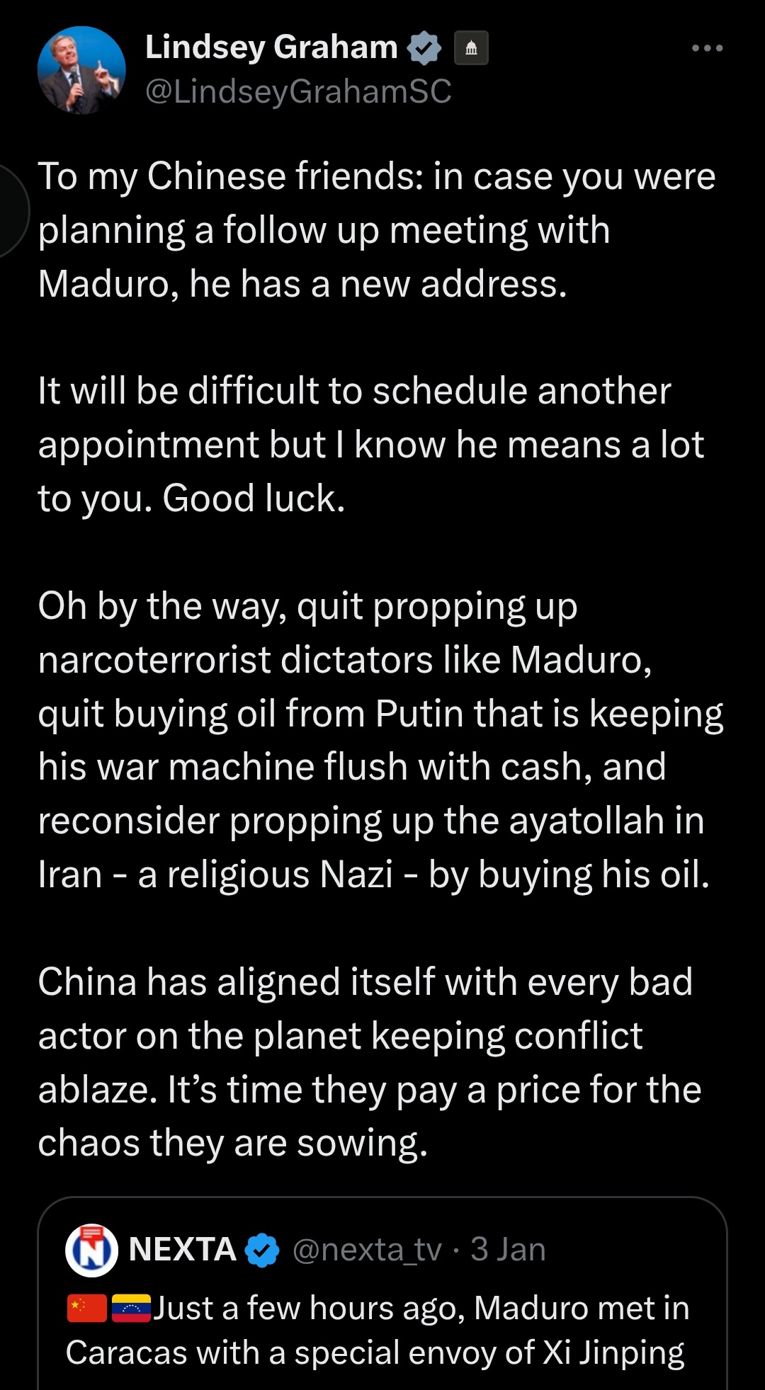 China is finished in South America. No more discounted oil from Venezuela. And people wonder why Iām so happy?