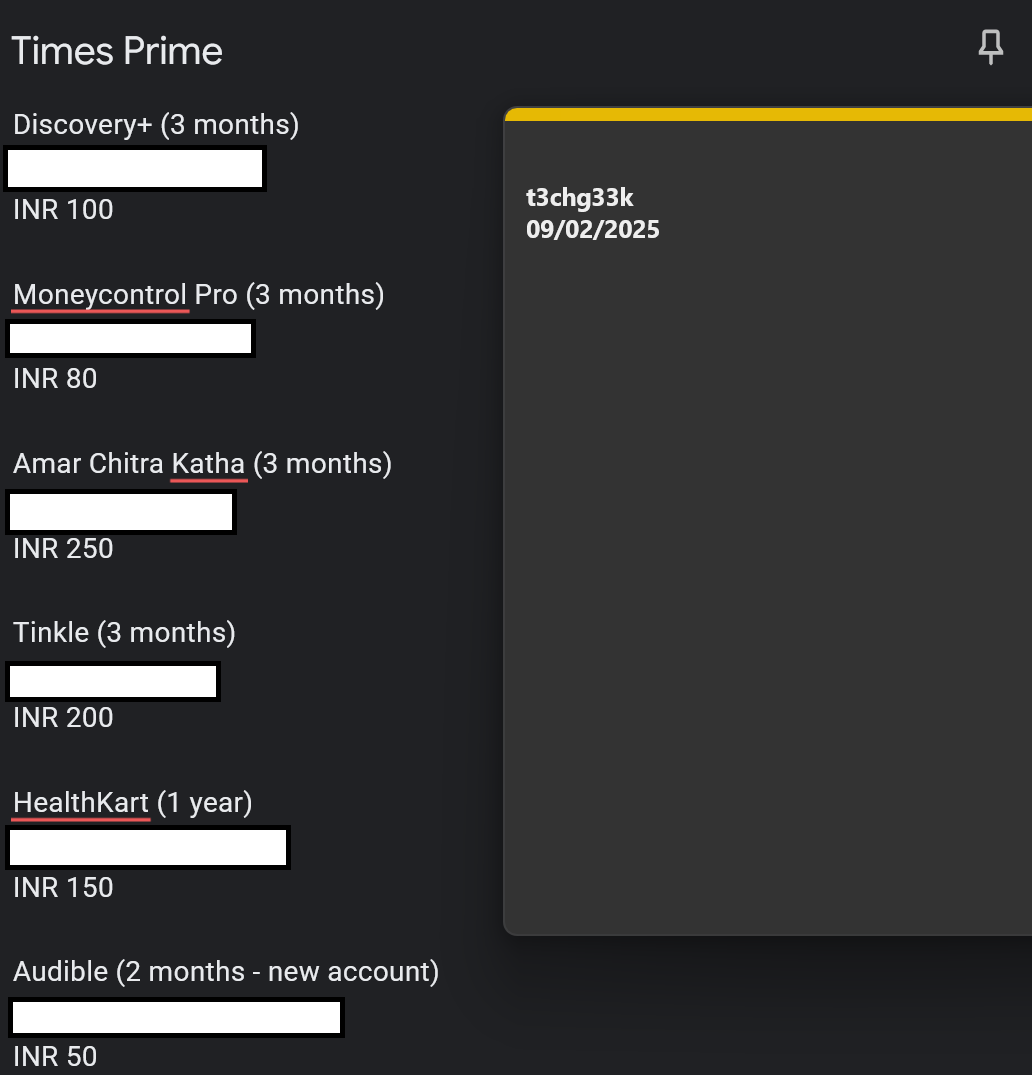 I had an existing Times Prime subscription of which I only used the Hotstar one. However, I purchased a new one specifically for Watcho as family members need those OTTs. Anyway, I generated the codes from the previous subscription and would like to sell those to offset the cost.