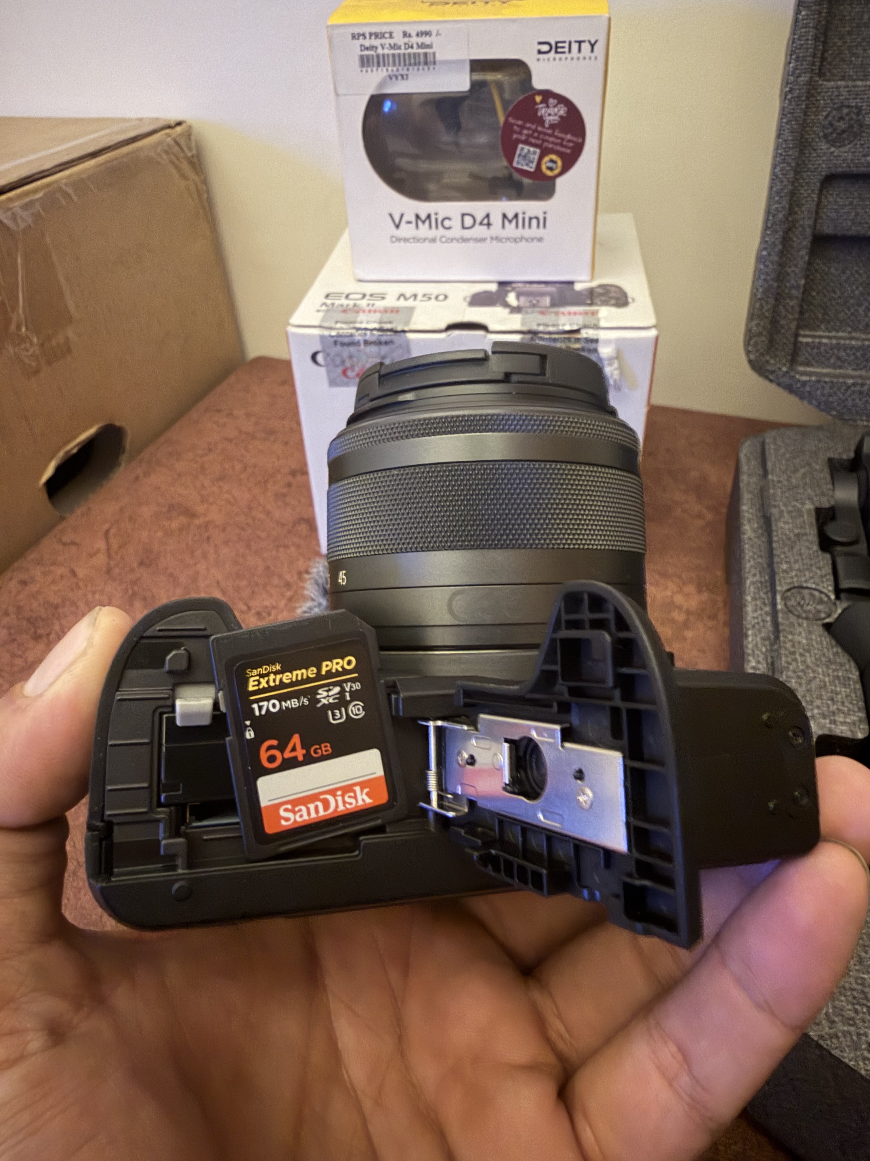 The camera also comes with a sandisk extreme 64gb card and a carry bag.