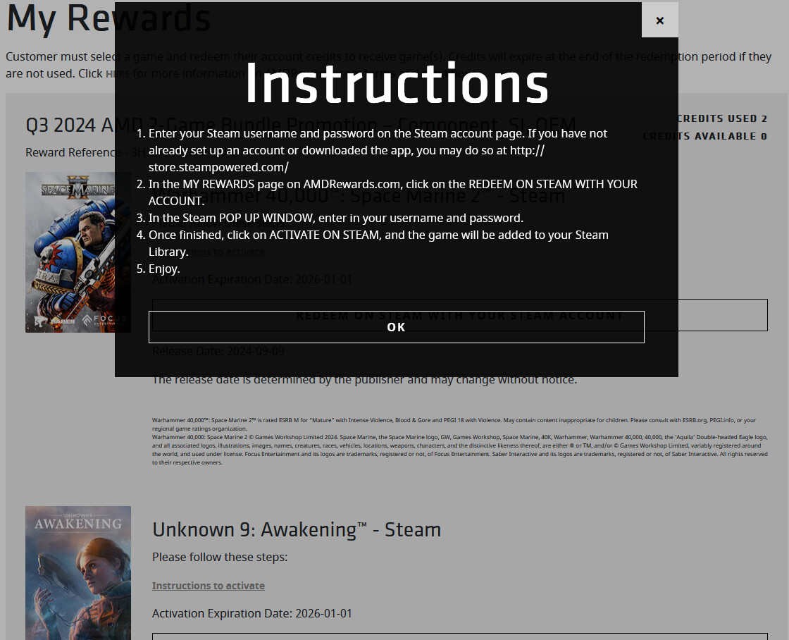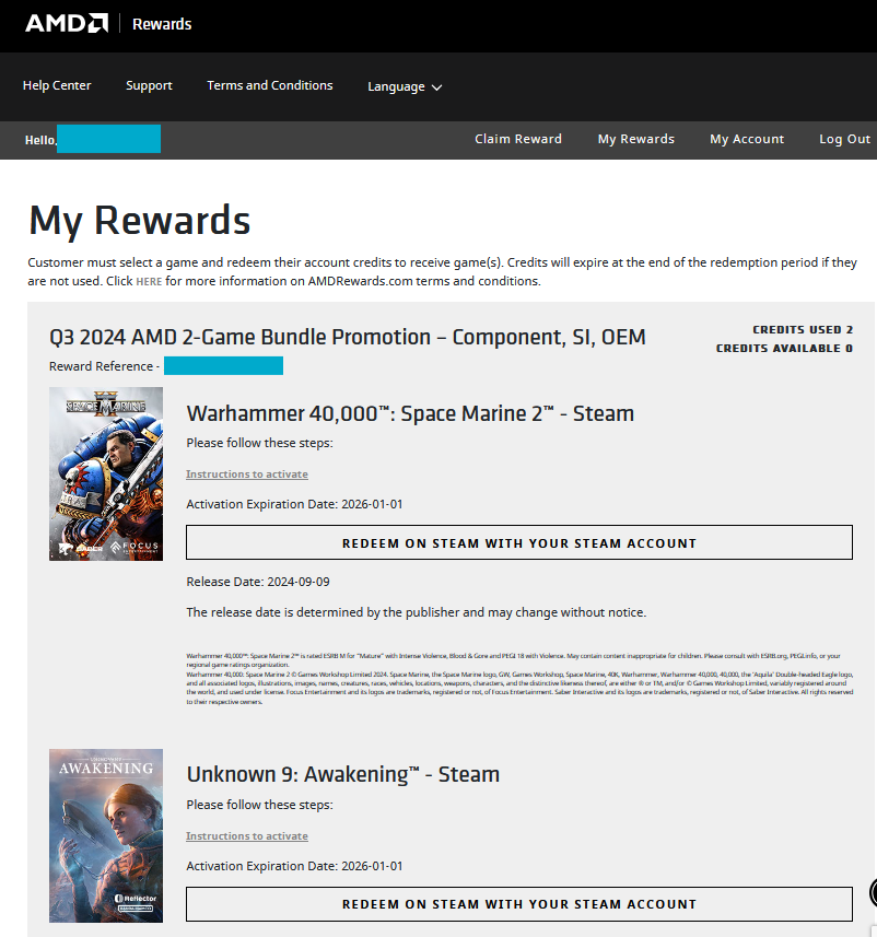 Recently I purchased AMD Ryzen Processor, received AMD Rewardz for 2 Games on STEAM platform.