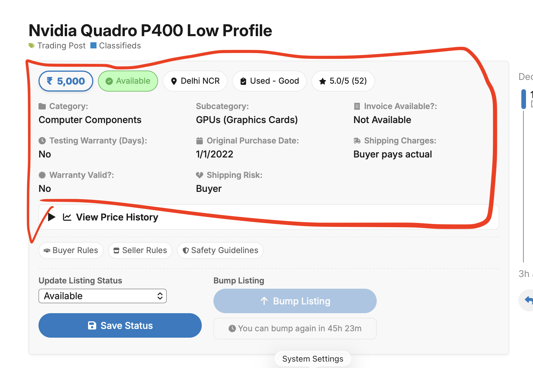 Is there any example where someone edited the price this way, and the “View Price History” feature is visible? I wanted to see what it looks like. I went through several listings but couldn’t find any. Not sure if it’s because people aren’t using it and are still resorting to updates in comments, or if it’s a visibility issue/bug.