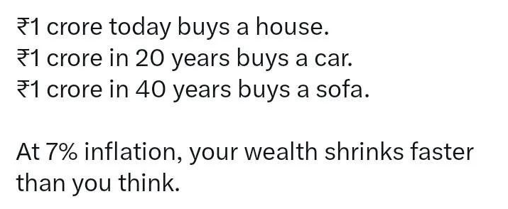 Well you will be investing everything into your preference of asset and taking out only what’s needed and when. This way you combat inflation and gain back a few percentage as well. If we assume inflation to be at a fixed rate of 7% (it’s lower but lets assume) and you gain 10% ROI (which is an expected return on S&P 500, 12-15% for mutual funds) that will leave you with 3% which depending on your corpus can be a large amount of passive income. 3% of 10 crores is 2 lakhs 50 thousnd PER MONTH.