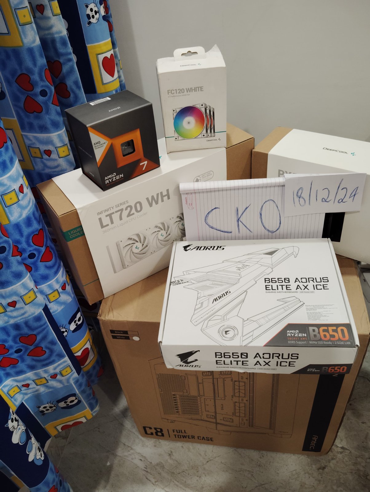 I will be moving out very soon and planning to adopt a cat as well, so I could definitely use some funds now. Most of the components were bought in July. Everything listed here (except the ssds) come with their respective brand warranties. There was a 3090 installed in this beast before as I was planning to upgrade to a 5090 at launch. This PC has been used very seldomly since it was built, as I was out of the country for the most part. Even the plastic peel is intact for the glass case. Safe to say that it has only been used to play Valorant by my little brother . I would prefer to sell this as a whole obviously, to save myself the hassle. However, If you are interested in multiple items we can work on that too, if I can find the buyers interested in the remaining items. I have attached pictures of the original packaging of all the products available as well.