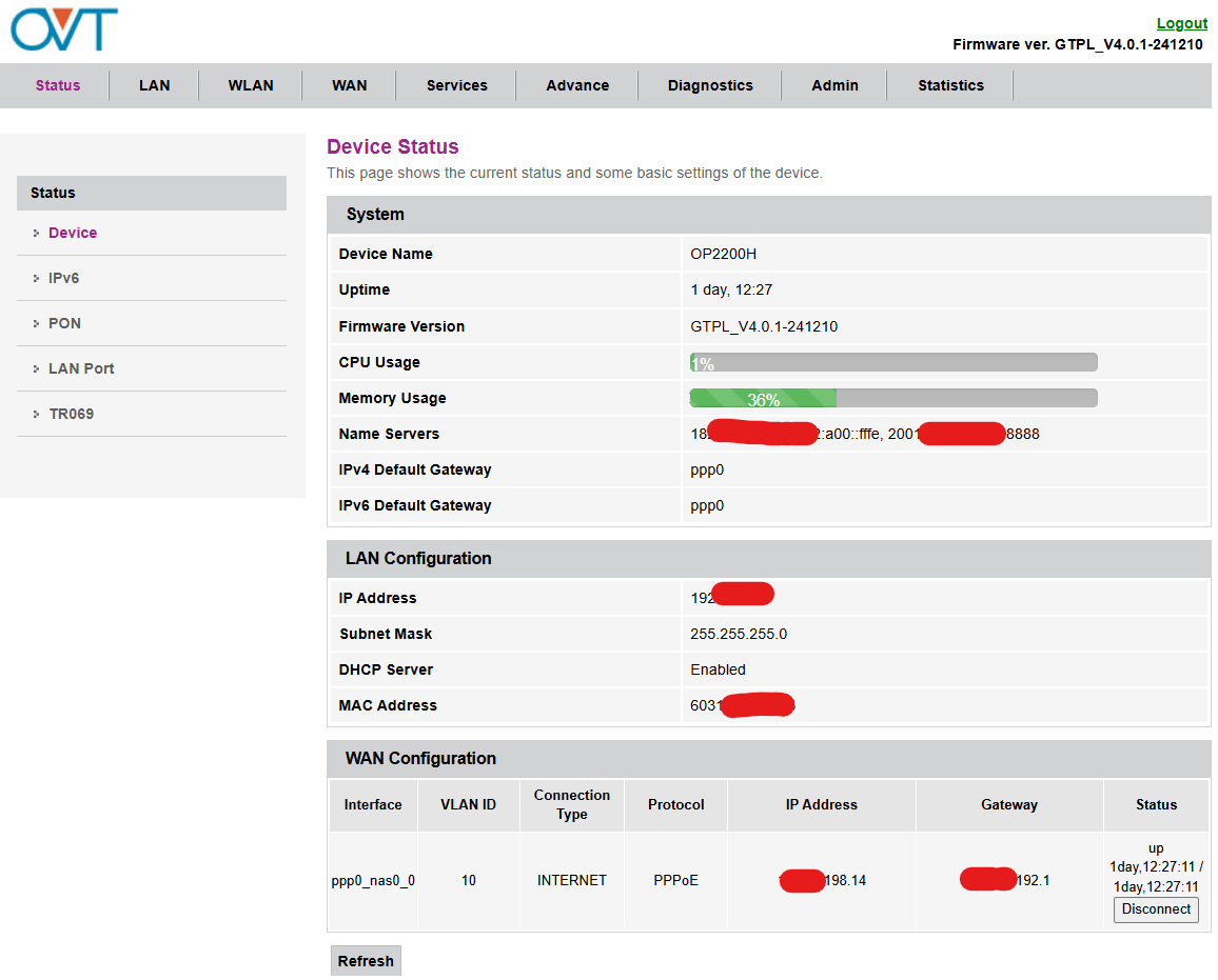 The technician arranged a configured ZTE GPON that GTPL used in the past, but that is also not working. As soon as I connect my ER605 load balancer to the ZTE GPON, I won’t be able to login at all. And GTPL have disabled the LAN port on the GPON so I cannot login to GPON also to configure.
