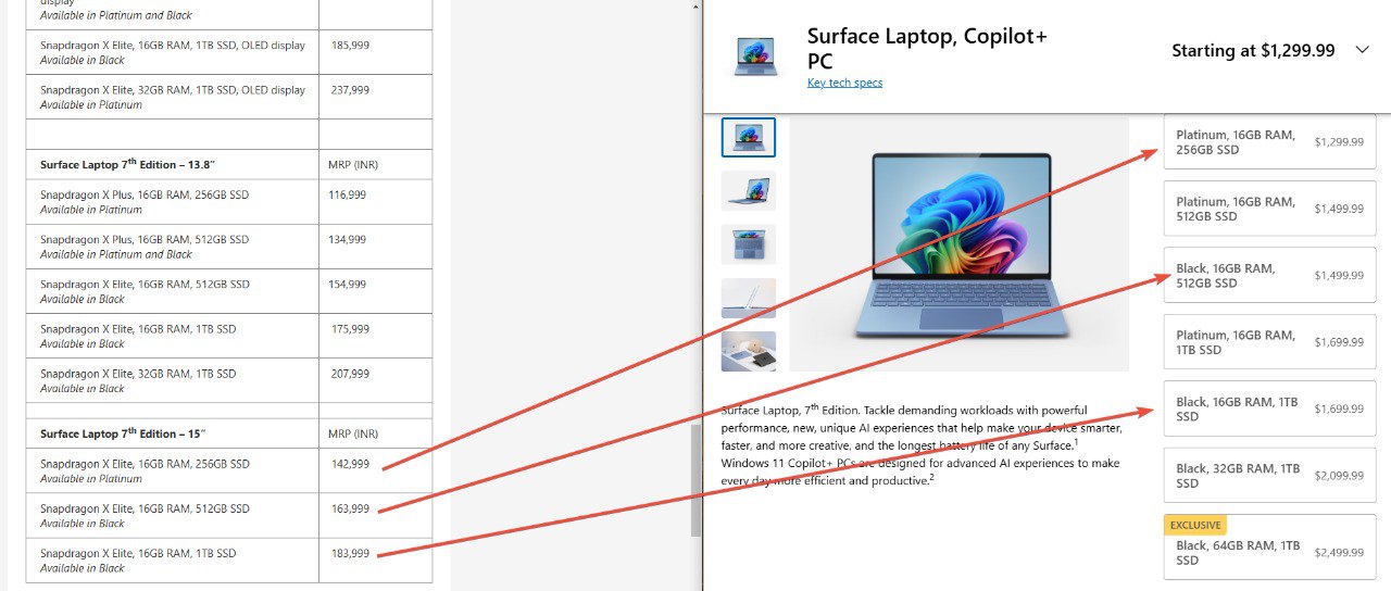 Apple has all customizations and SKUs available in India, unlike Microsoft, who chose to release only a few SKUs.