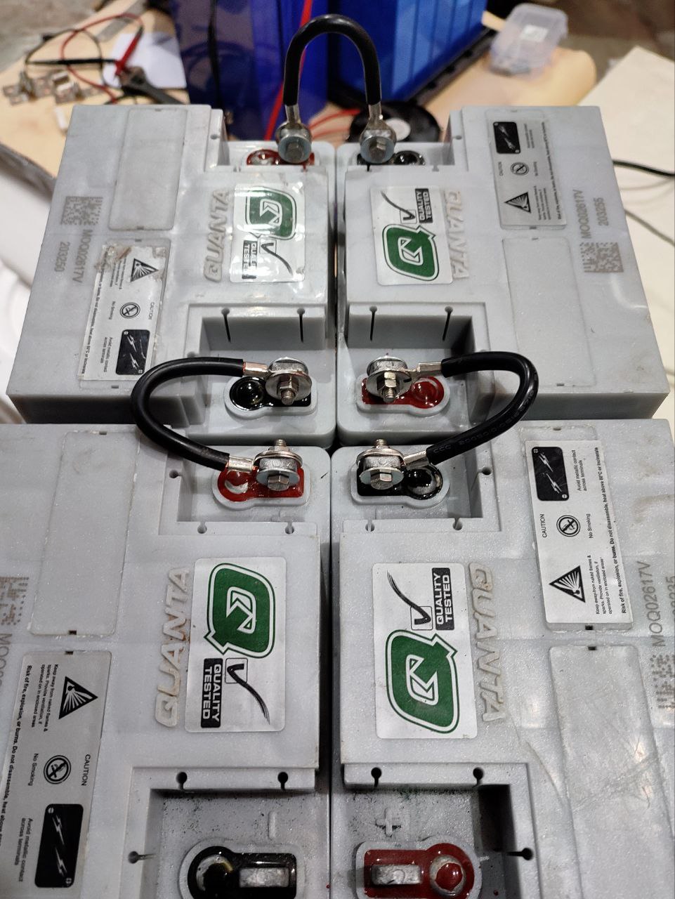 I used some scavenged 10 sq mm from the MuscleGrid battery’s BMS to make the connecting cables, since this is essentially a budget/temporary solution I didn’t go all out with new hardware or even heatshrink.