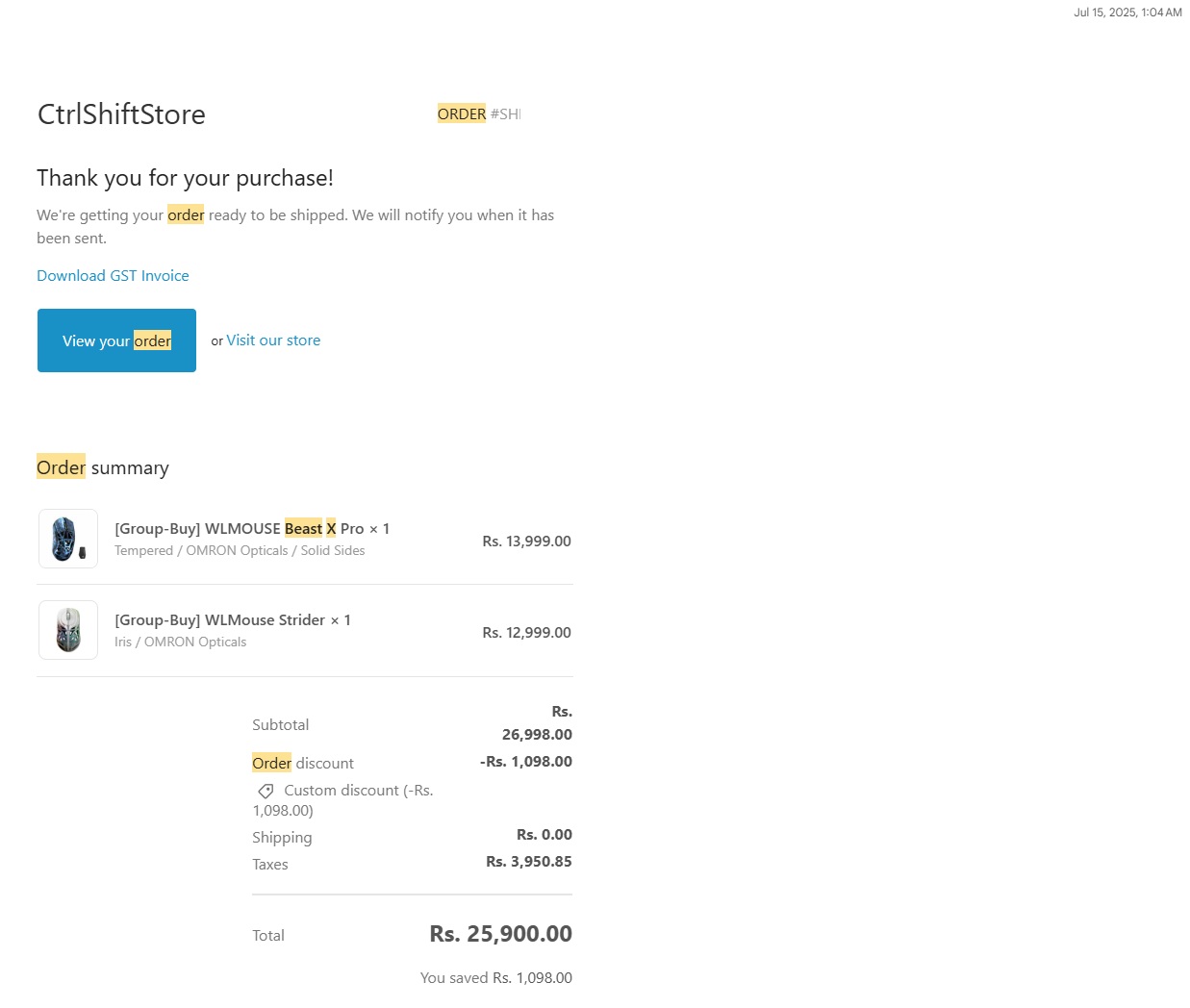 Age /Ownership history- Pre ordered from CtrlShiftStore on 15/07/25, delivered on 02/09/25
