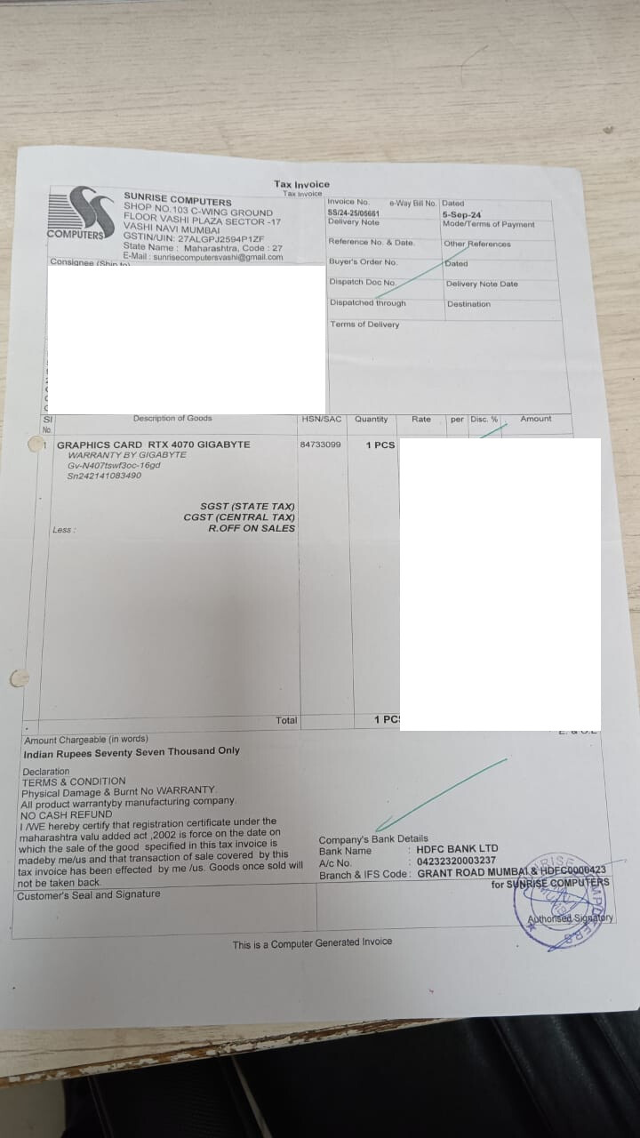 The invoice mentions only 4070 while the card is 4070 ti super. Am I missing something here?