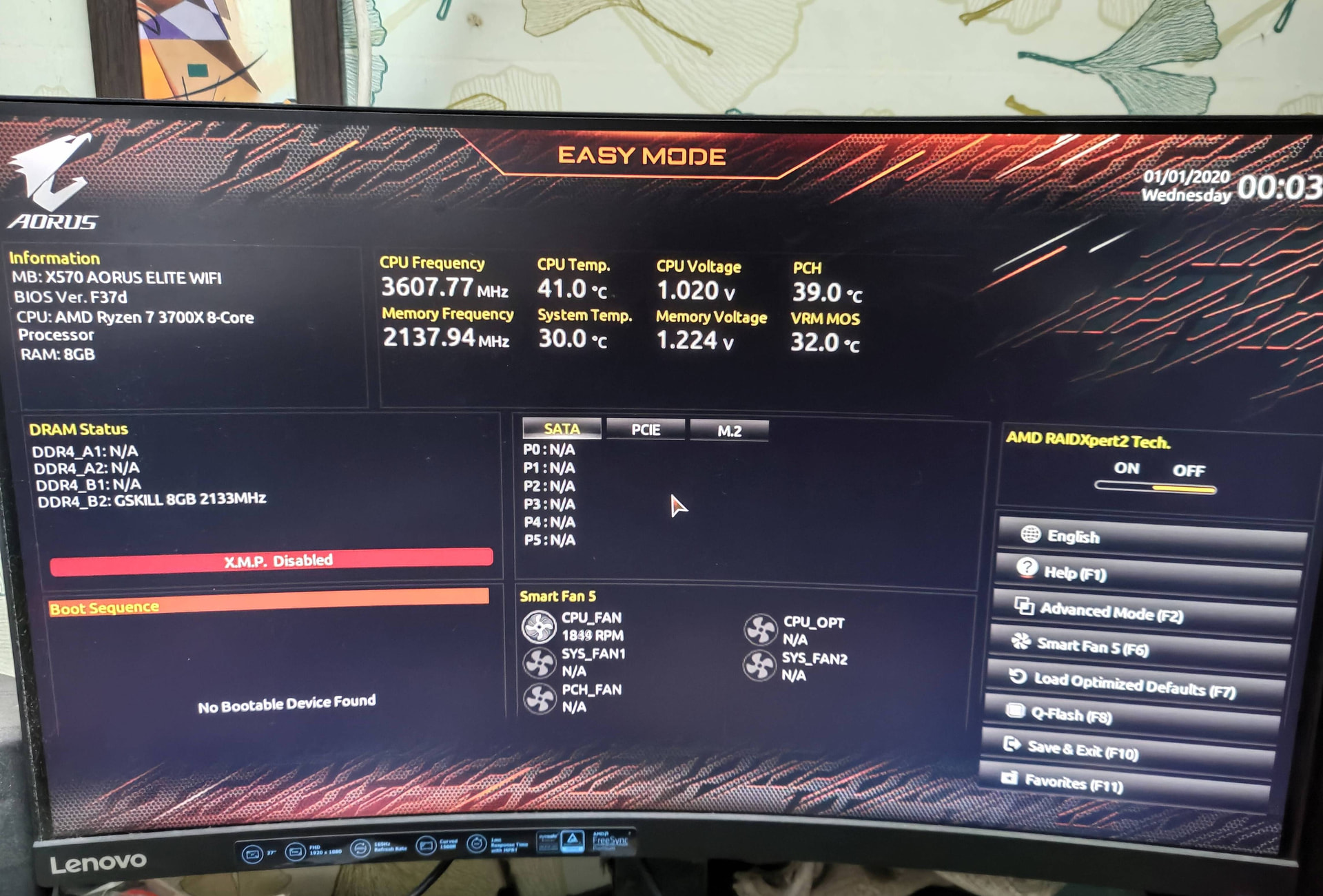 Gigabyte X570 Aorus Elite Wi-Fi + Ryzen 7 3700X + 16GB [2X8GB] - 26k shipped