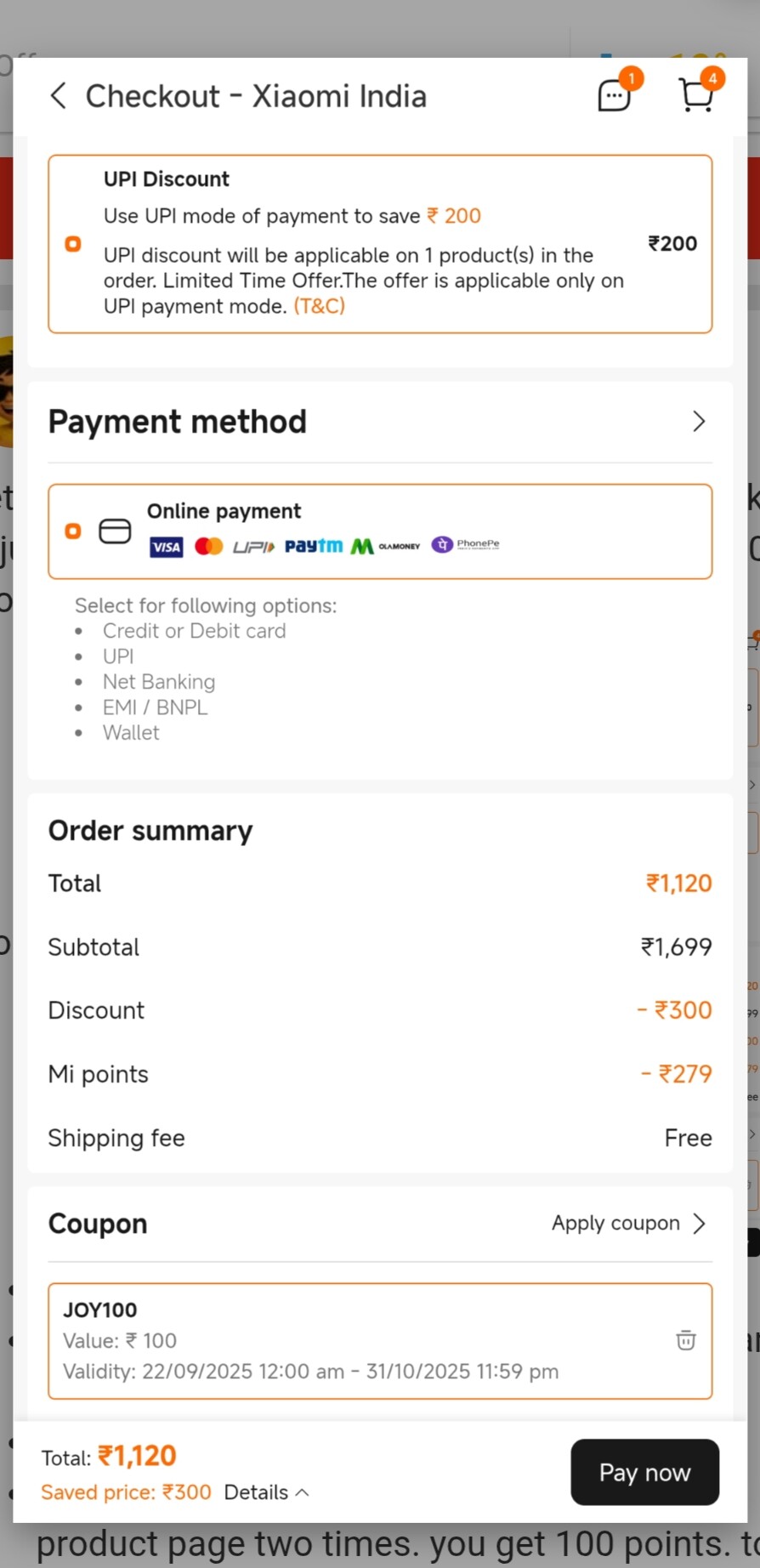 Tip Earn Mi Points in just 2 weeks: Share any product page two times. you get 100 points. to daily check in a week you get 70 + Bouns 100. in just 14 days you can arrange 440+ Points.