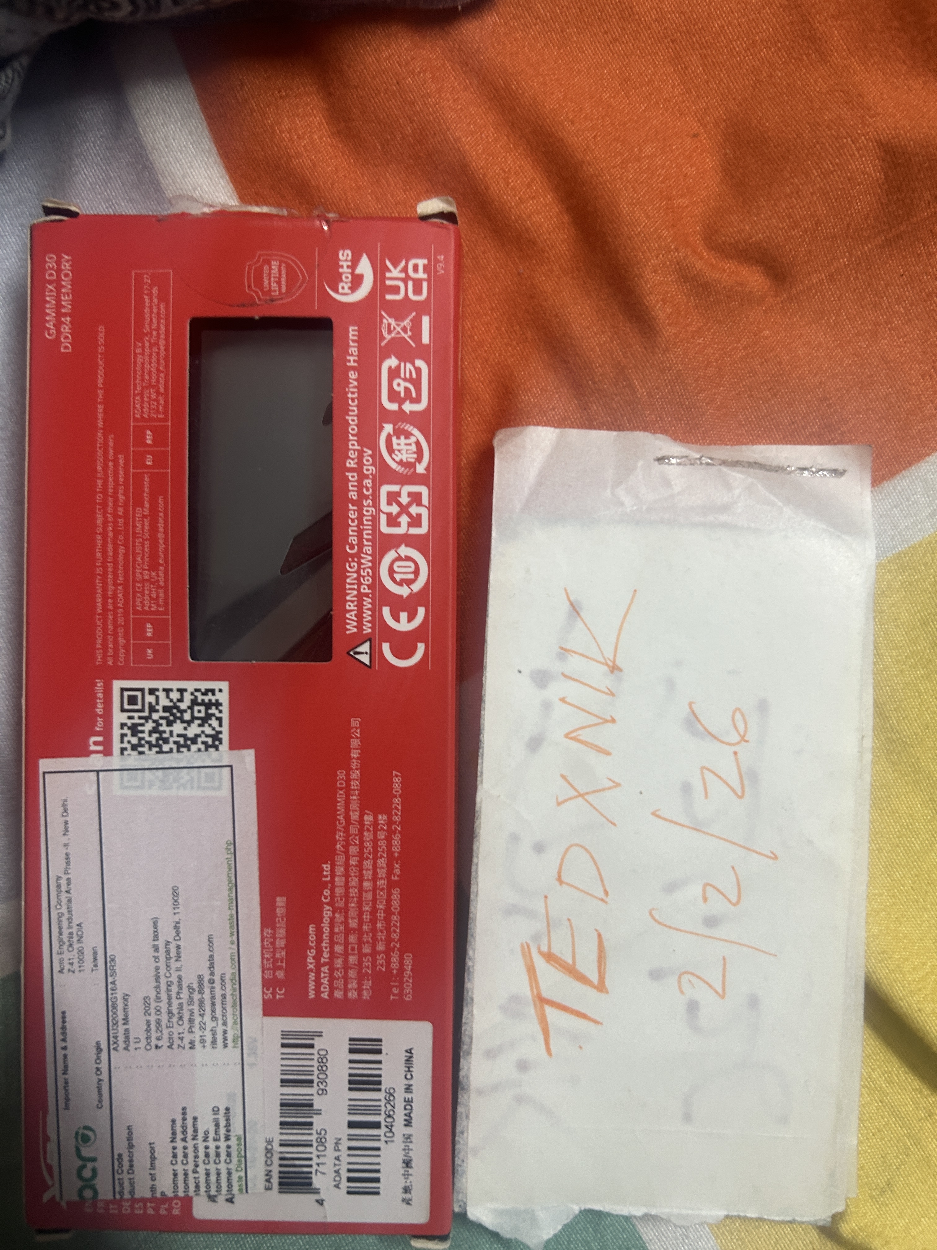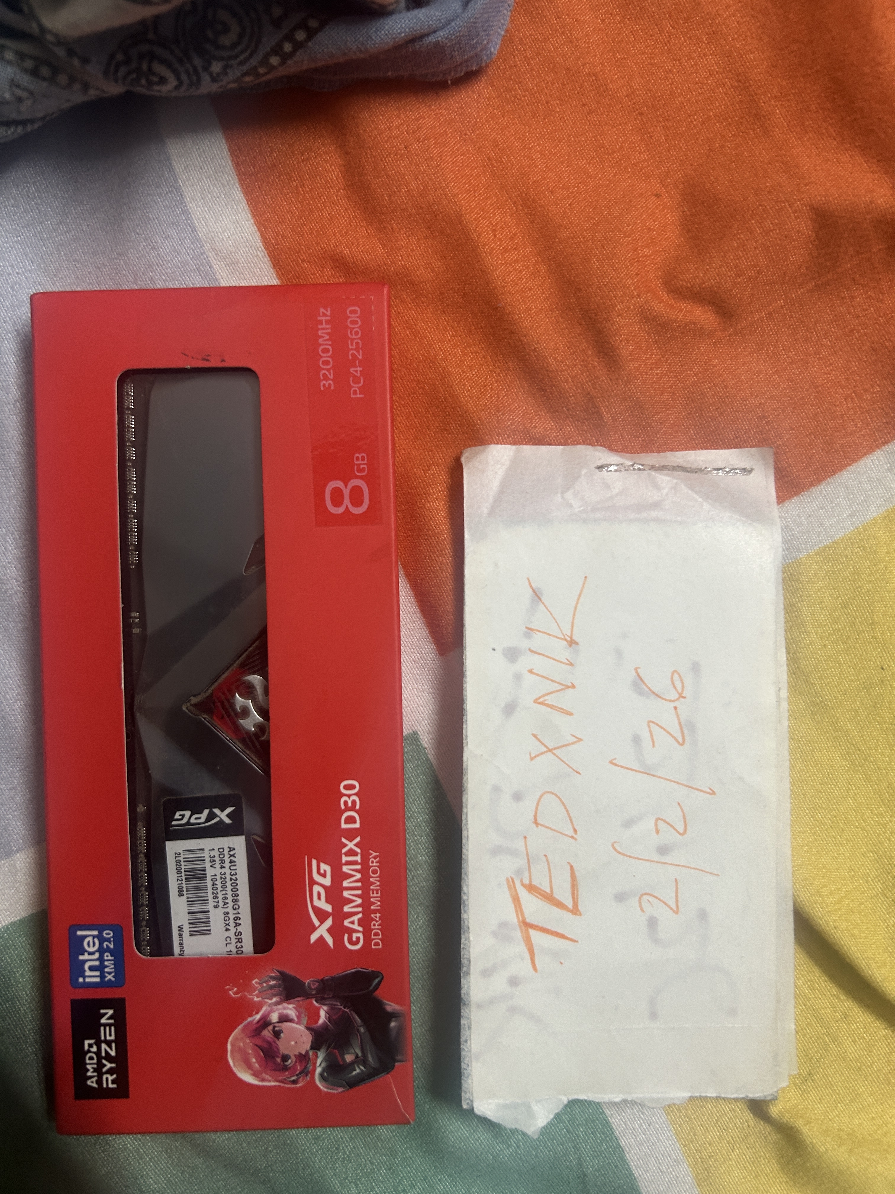 8GB 3200mhz cl16 purchased early 2024. No bill, testing warranty 10 days Shipping extra